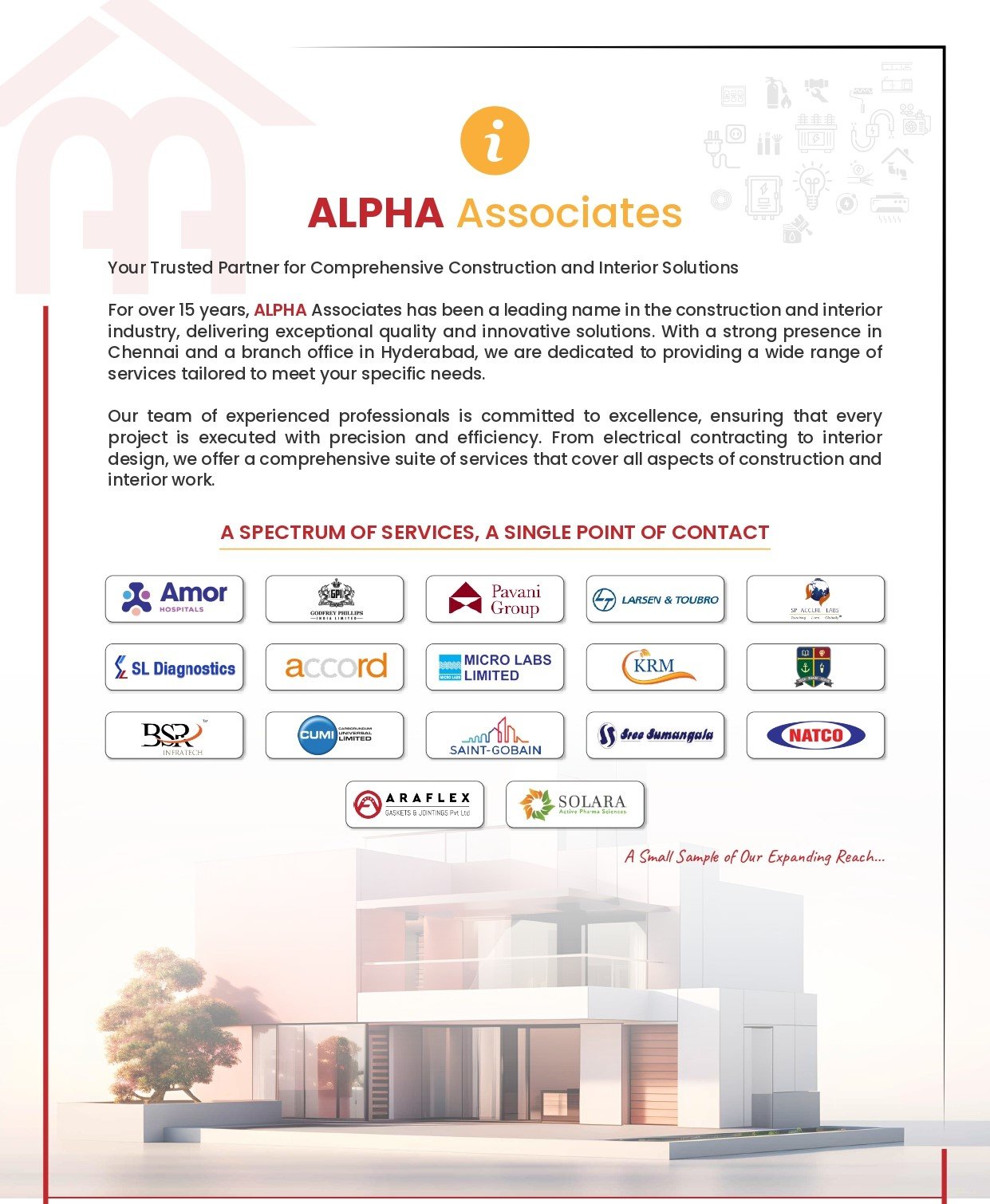 At Alpha Associates, we believe in the power of quality products and services as it is the single most important factor in customers list of considerations. So, from our end we render quality based products and services like Painting Services ,Interior Design etc. Our personnel maintain cordial relations with the customers and render the best solutions in return of their hard earned money. GST: 33AEZpR3133UC1Z8